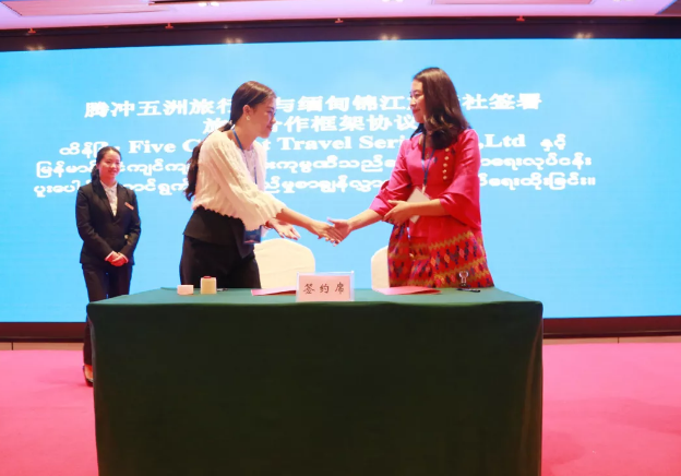 2018年9月28日,值此第六屆中國保山騰沖邊境貿(mào)易交易會之際,在云南省商務(wù)廳、保山市人民政府主辦的中國(云南)— 緬甸(克欽邦)貿(mào)易推介商洽會上,恒益集團下屬公司五洲旅行社與緬甸錦江旅行社結(jié)合各自資源和優(yōu)勢,就邊境旅游服務(wù)、出入境手續(xù)辦理、境外安全等約定達(dá)成一致,簽署旅游合作框架協(xié)議。協(xié)議的簽訂,對雙方邊境旅游服務(wù)的開展質(zhì)量、安全等方面有了切實保障,這勢必也將更好地帶動和促進中緬雙方的文化交流頻率和深度。