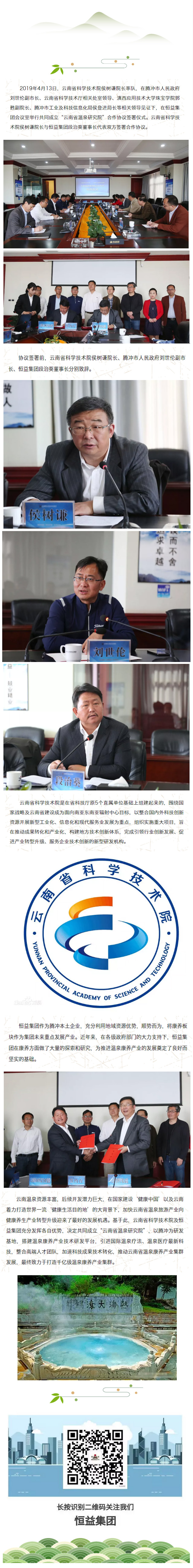 云科院與恒益集團(tuán)簽署共同成立“云南省溫泉研究院”合作協(xié)議 來源: 瀏覽量:8304 日期:2019-04-15 分享到: 上一篇:京東集團(tuán)到訪恒益,達(dá)成農(nóng)牧業(yè)領(lǐng)域合作共識(shí) 下一篇:黃必志院長(zhǎng)一行蒞臨東山農(nóng)業(yè)調(diào)研,助力恒益肉牛產(chǎn)業(yè)發(fā)展