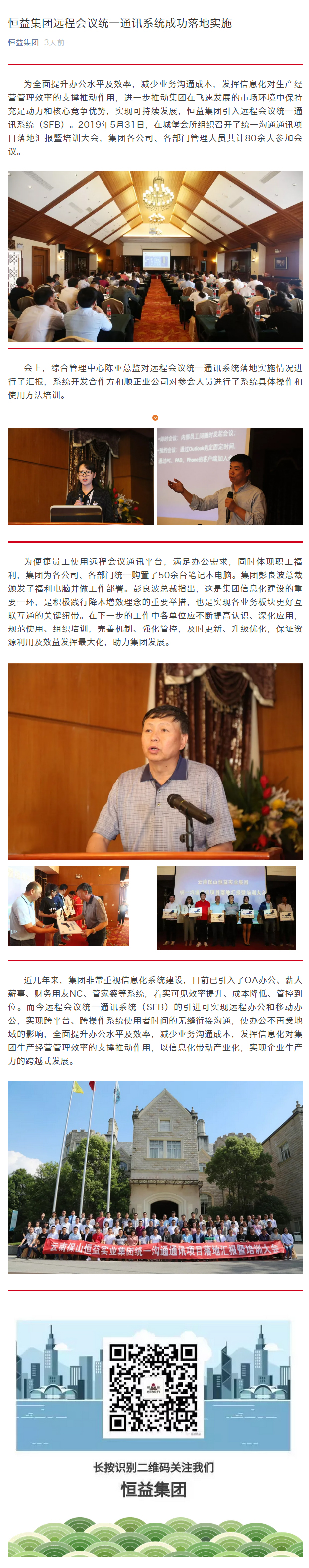 恒益集團(tuán)遠(yuǎn)程會議統(tǒng)一通訊系統(tǒng)成功落地實施 來源: 瀏覽量:7713 日期:2019-06-03 分享到: 上一篇:大理州、市領(lǐng)導(dǎo)一行參觀考察高黎貢文化創(chuàng)意產(chǎn)業(yè)園區(qū) 下一篇:恒益集團(tuán)組織召開戰(zhàn)略部署及強(qiáng)化內(nèi)部管理會議