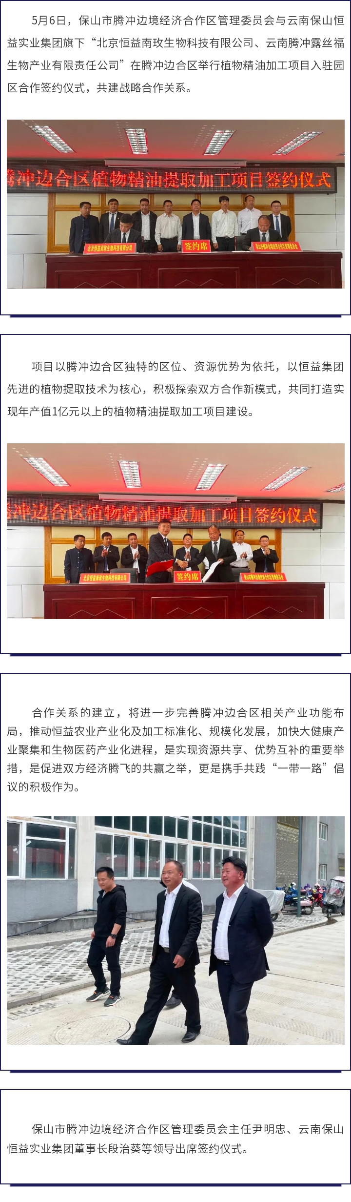 保山市騰沖邊境經(jīng)濟合作區(qū)管理委員會與云南保山恒益實業(yè)集團簽訂項目合作協(xié)議 來源: 瀏覽量:6130 日期:2022-05-07 分享到: 上一篇:奮力拼搏展風(fēng)采,攜手同心創(chuàng)佳績 下一篇:博學(xué)于文,約之以禮——恒益集團組織“國賓禮儀”主題專場培訓(xùn)