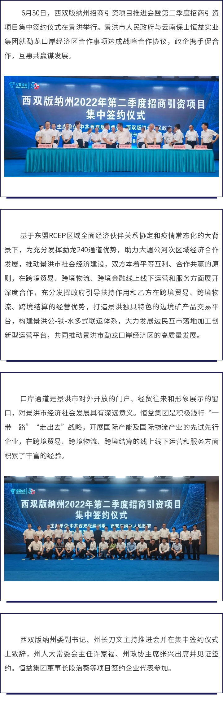 政企攜手促合作 同頻共振謀發(fā)展丨景洪市人民政府與恒益集團簽署戰(zhàn)略合作協(xié)議 來源: 瀏覽量:5600 日期:2022-07-18 分享到: 上一篇:臨滄邊合區(qū)管委會與恒益集團簽署戰(zhàn)略合作協(xié)議 下一篇:云南省梁河縣四家寨硅石礦開采項目環(huán)境影響評價公眾參與第二次公示