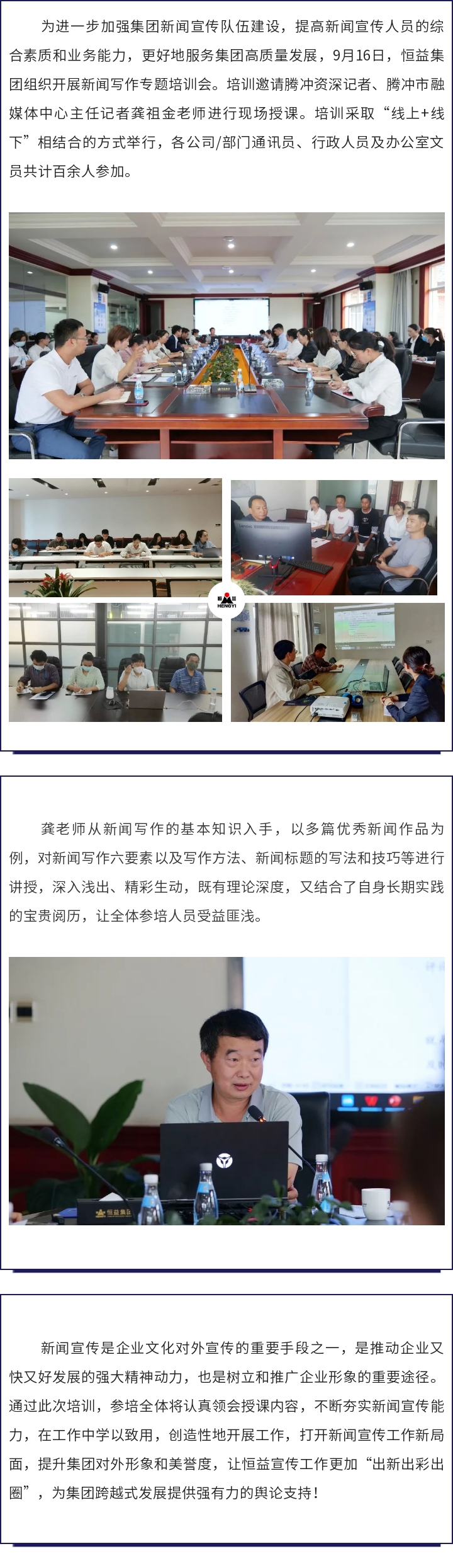 恒益集團(tuán)組織開展新聞寫作專題培訓(xùn) 來源: 瀏覽量:5398 日期:2022-09-20 分享到: 上一篇:校企合作譜新篇,協(xié)同育人共發(fā)展 下一篇:喜訊│恒益集團(tuán)榮獲捐資助學(xué)、尊師重教先進(jìn)集體(個人)