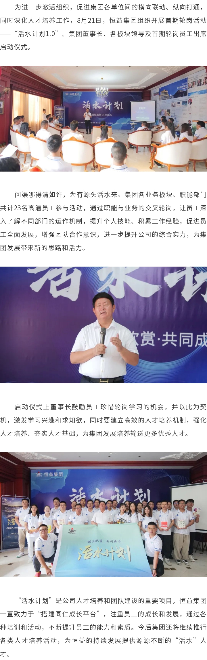 恒益集團(tuán)組織開(kāi)展輪崗項(xiàng)目“活水計(jì)劃1.0” 來(lái)源: 瀏覽量:4413 日期:2023-08-22 分享到: 上一篇:喜訊│恒益集團(tuán)榮獲“尊師重教先進(jìn)集體”稱號(hào) 下一篇:關(guān)于公開(kāi)騰沖縣固?hào)|鐵窯山鐵礦廠礦山開(kāi)采項(xiàng)目水土保持設(shè)施自主驗(yàn)收情況的通告