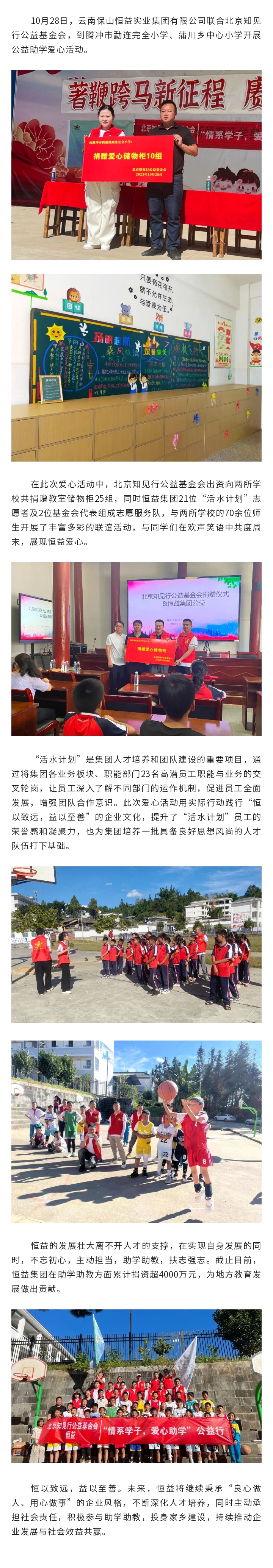 情系學(xué)子 愛心助學(xué)| 恒益集團聯(lián)合知見行公益基金會開展公益助學(xué)愛心活動 來源: 瀏覽量:4181 日期:2023-10-30 分享到: 上一篇:東山實訓(xùn)基地首期新員工培訓(xùn)圓滿結(jié)束 下一篇:滇灘鐵礦東排土場建設(shè)項目一期工程施工監(jiān)理招標(biāo)公告