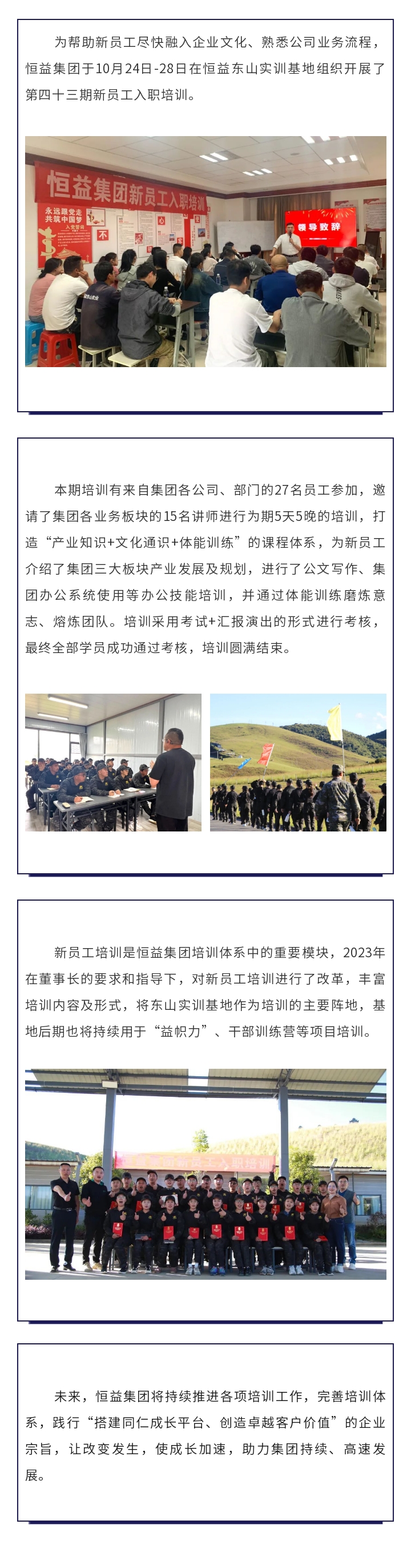 東山實訓基地首期新員工培訓圓滿結(jié)束 來源: 瀏覽量:4236 日期:2023-10-30 分享到: 上一篇:高黎貢文化創(chuàng)意產(chǎn)業(yè)園區(qū)為什么能在省級評選中脫穎而出 下一篇:情系學子 愛心助學| 恒益集團聯(lián)合知見行公益基金會開展公益助學愛心活動