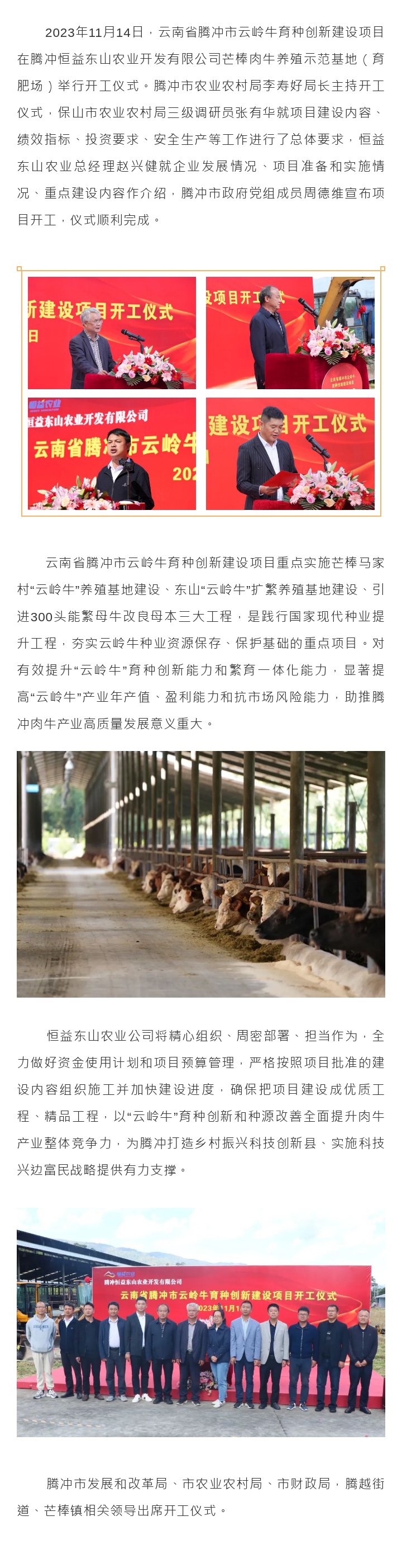 云南省騰沖市云嶺牛育種創(chuàng)新建設(shè)項目正式開工 來源: 瀏覽量:4330 日期:2023-11-14 分享到: 上一篇:騰馬激情開跑,恒益健兒展風(fēng)采 下一篇:騰沖市恒益礦產(chǎn)品經(jīng)貿(mào)有限責(zé)任公司滇灘鐵礦東排土場建設(shè)項目環(huán)境影響報告書公眾參與第一次信息公示