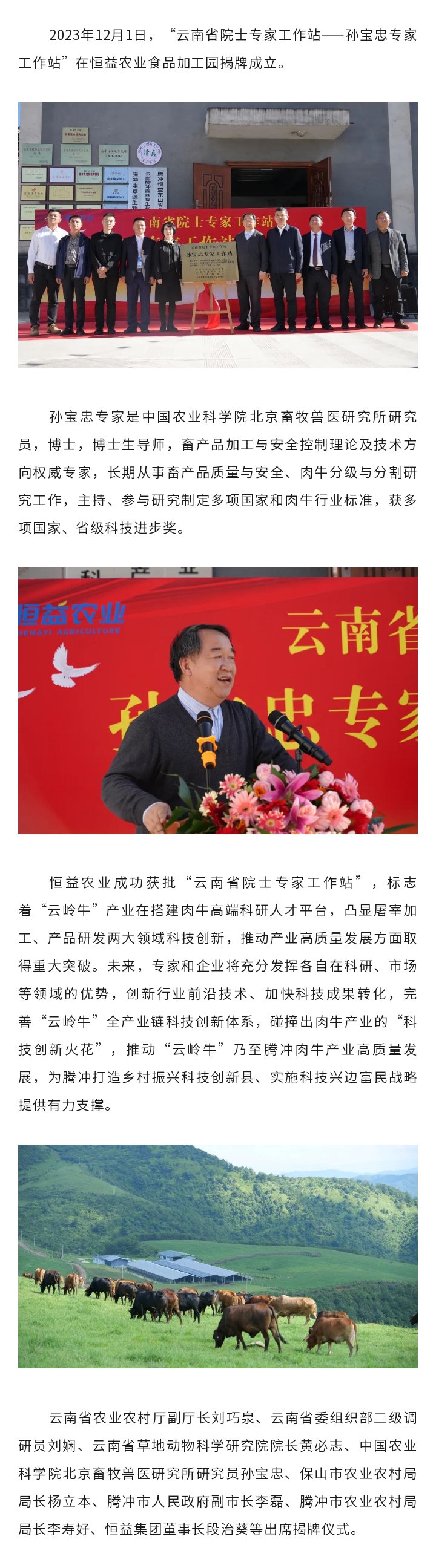 “云南省院士專家工作站——孫寶忠專家工作站”在恒益農(nóng)業(yè)揭牌 來源: 瀏覽量:4209 日期:2023-12-02 分享到: 上一篇:2023騰沖科學家論壇·溫泉醫(yī)康養(yǎng)產(chǎn)業(yè)發(fā)展論壇在騰沖恒益東湖溫泉健康管理中心成功舉辦 下一篇:大咖來了丨2023騰沖科學家論壇·大健康產(chǎn)業(yè)創(chuàng)新發(fā)展活動院士導覽