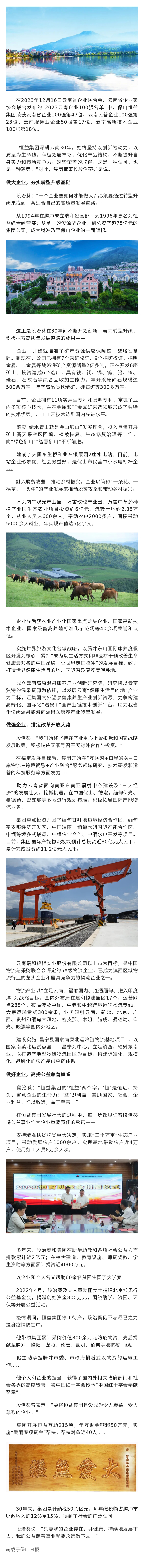 揚帆正當(dāng)時 逐潮擊浪高——記保山市第二屆“興保人才獎”獲獎?wù)叨沃慰?/h3> 來源: 瀏覽量:4450 日期:2023-12-28 分享到: 上一篇:喜訊丨恒益集團董事長段治葵獲保山市第二屆“興保人才獎”榮譽表彰 下一篇:考察聯(lián)誼謀發(fā)展,合作共贏譜新篇