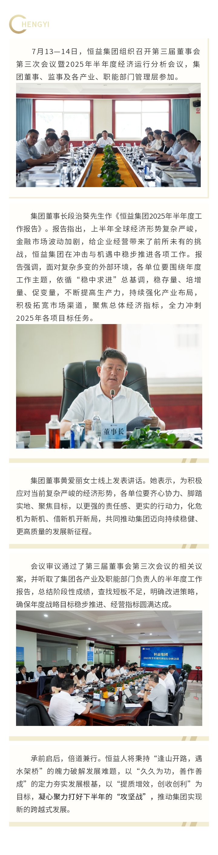 恒益集團(tuán)召開(kāi)第三屆董事會(huì)第三次會(huì)議暨2025年半年度經(jīng)濟(jì)運(yùn)行分析會(huì)議 來(lái)源: 瀏覽量:1689 日期:2025-07-14 分享到: 上一篇:恒益集團(tuán)2025屆“益幟力”管培生集訓(xùn)開(kāi)營(yíng)啦! 下一篇:北緯25°的清涼約定~騰沖東山草原·云端19℃夏
