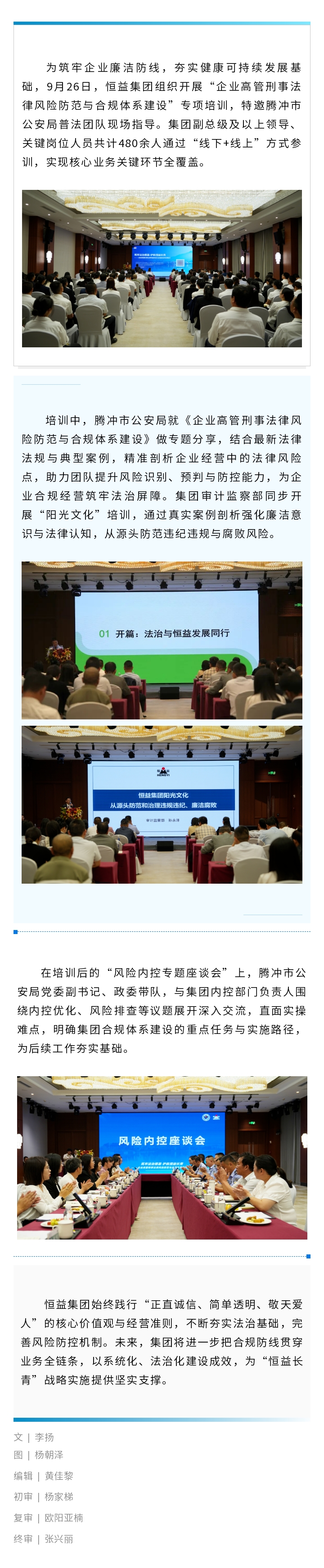 恒益集團(tuán)開(kāi)展高管刑事法律風(fēng)險(xiǎn)防范與合規(guī)體系建設(shè)專項(xiàng)培訓(xùn) 來(lái)源: 瀏覽量:1137 日期:2025-09-28 分享到: 上一篇:恒益集團(tuán)黨委赴松山抗戰(zhàn)遺址開(kāi)展主題黨日活動(dòng) 下一篇:榮登雙榜!恒益集團(tuán)榮獲2025云南民企百?gòu)?qiáng)第30位、服務(wù)業(yè)20強(qiáng)第8位