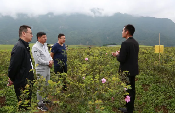 6月3日,調(diào)研組一行在恒益集團(tuán)總裁彭良波、董事朱旭東及相關(guān)高管的陪同下,對恒益大馬士革玫瑰項(xiàng)目進(jìn)行實(shí)地調(diào)研參觀,先后到達(dá)了大馬士革玫瑰明光種植基地、玫瑰觀光莊園、固東玫瑰品種資源科普基地、玫瑰臨時(shí)加工車間。期間,露絲福公司總經(jīng)理彭文濤就大馬士革玫瑰項(xiàng)目建設(shè)情況、下步發(fā)展定位及產(chǎn)業(yè)規(guī)劃作了詳細(xì)匯報(bào)。針對產(chǎn)業(yè)下步發(fā)展方向、產(chǎn)品開發(fā)、一二三產(chǎn)業(yè)融合等,羅軍書記與彭良波總裁、彭文濤總經(jīng)理進(jìn)行了深入溝通。同時(shí),彭良波總裁就玫瑰項(xiàng)目所帶來的精準(zhǔn)扶貧、農(nóng)民增收、經(jīng)濟(jì)效益方面也作了深入分析。